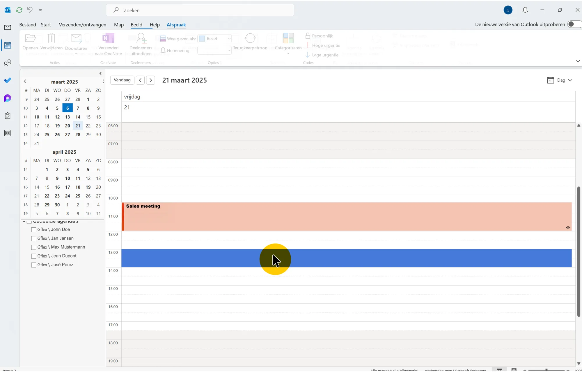 Let op: Dit kan niet met externe personen aangezien je daar geen toegang hebt tot de agenda.
